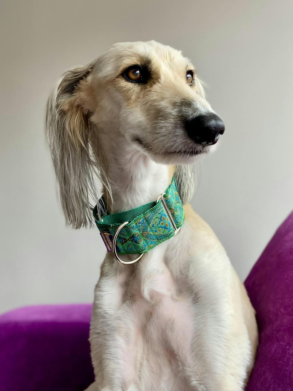 Martingale dog collar. This collar is only available in 2-inch width. Beautiful shimmering jacquard that catches the light. Strong, soft and flexible polypropylene web lining. Welded hardware. Handmade to order within 5 business days, worldwide shipping.
